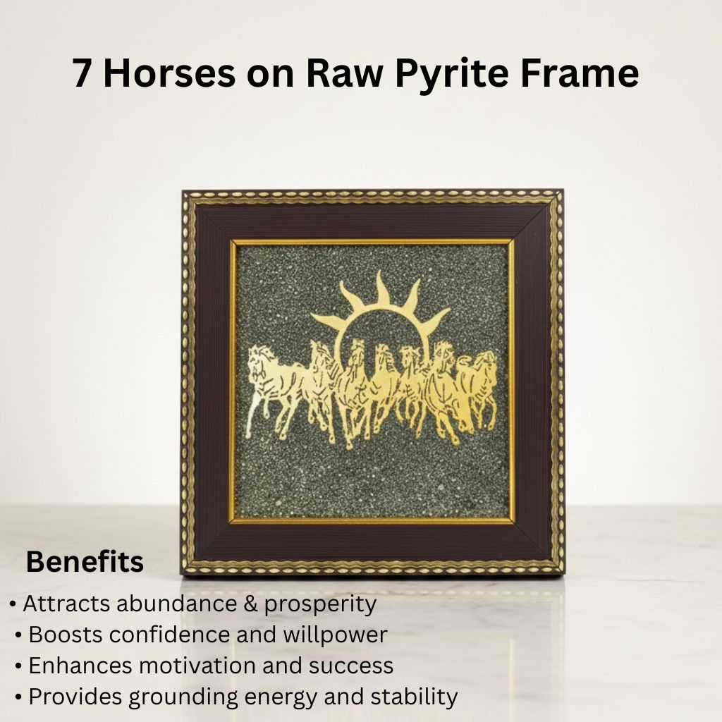 This 7 Horses Pyrite Frame is ideal for home décor, offices, workspaces, and gifting, blending spiritual power with elegant design.