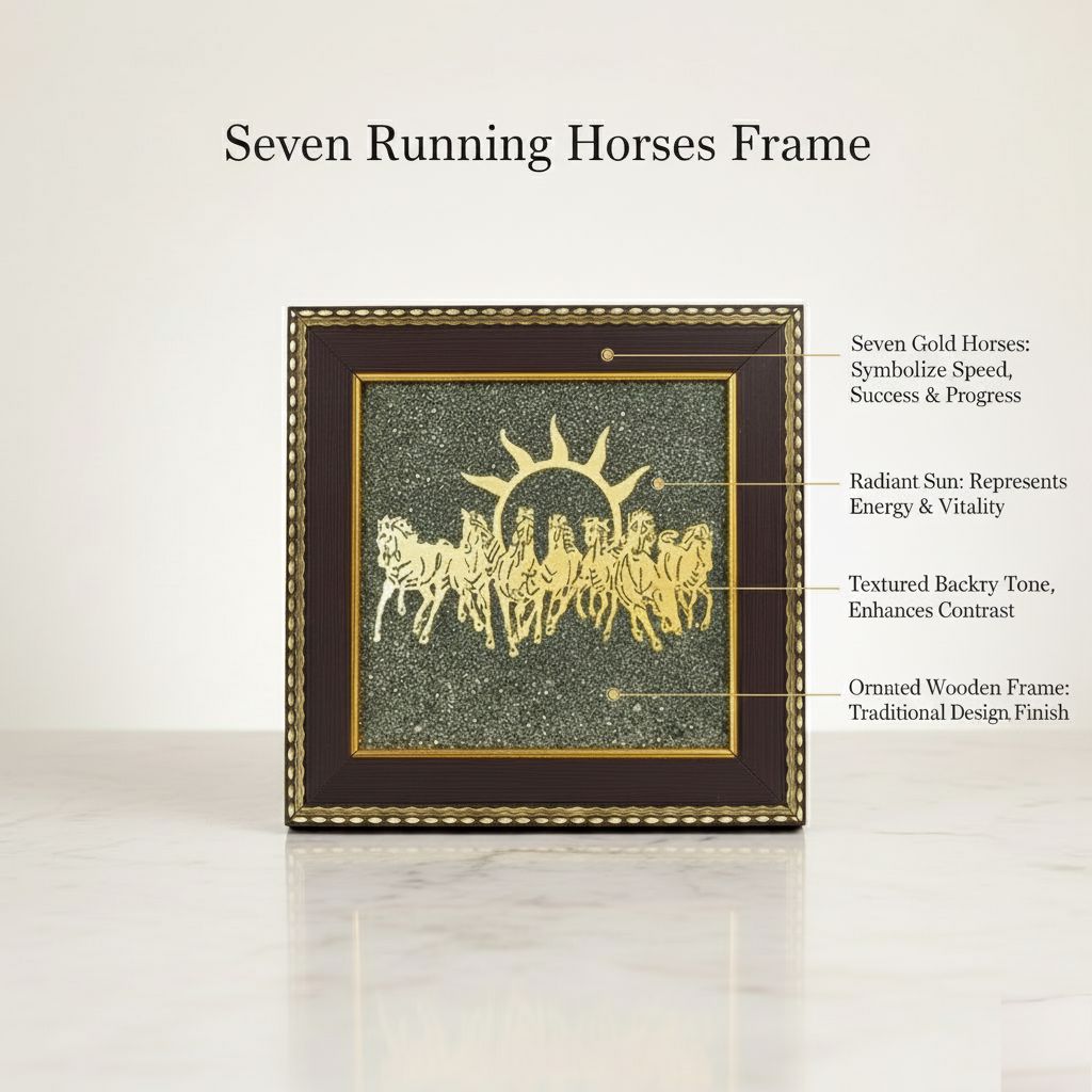 According to Vastu Shastra, the seven horses are linked to Suryadev (Sun God), who rides a chariot drawn by seven horses. This represents growth, power, and an upward phase in life. The running horses symbolize speed, determination, and success in achieving goals.