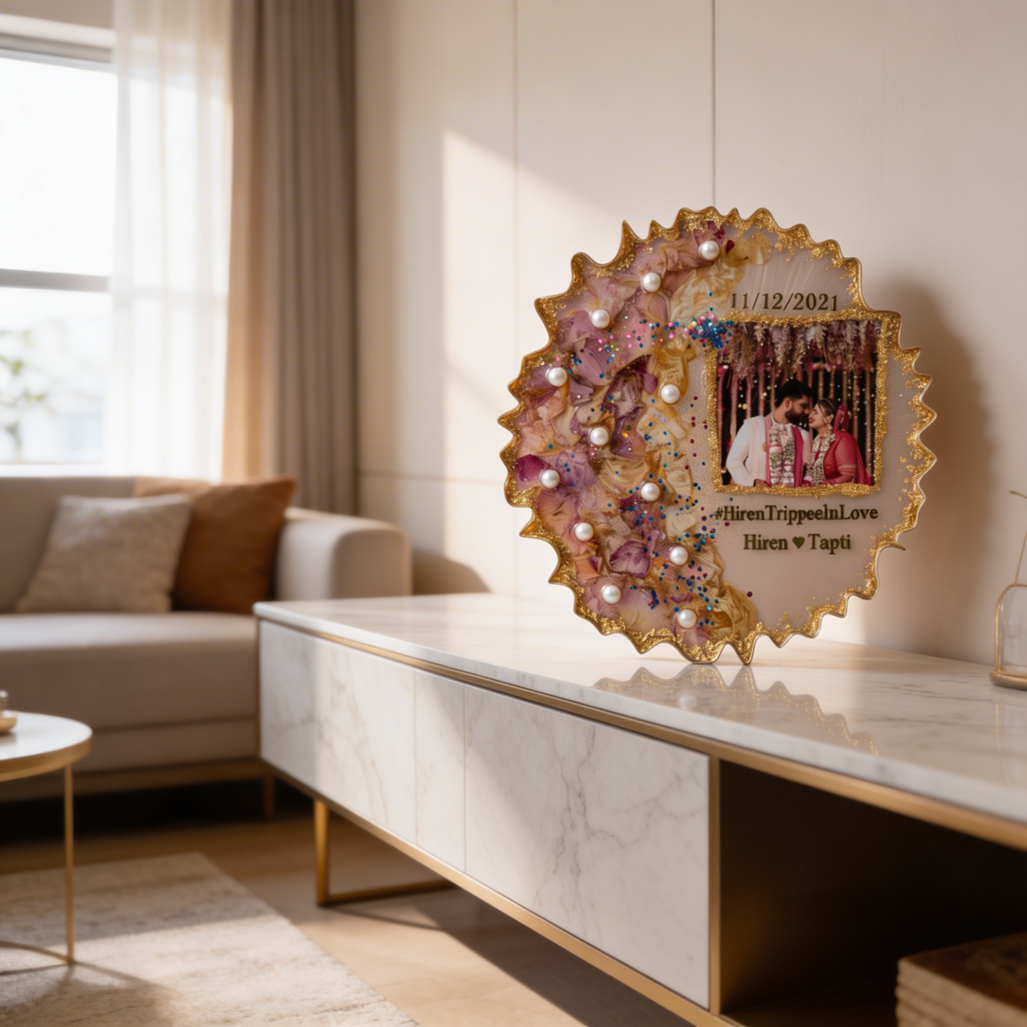 Agate Resin Photo Frame is a beautiful and meaningful decor piece made with natural agate. Known for its calming and balancing energy, agate promotes harmony, positivity, and emotional stability. Perfect for displaying your favorite memories while adding positive vibes to any space.
