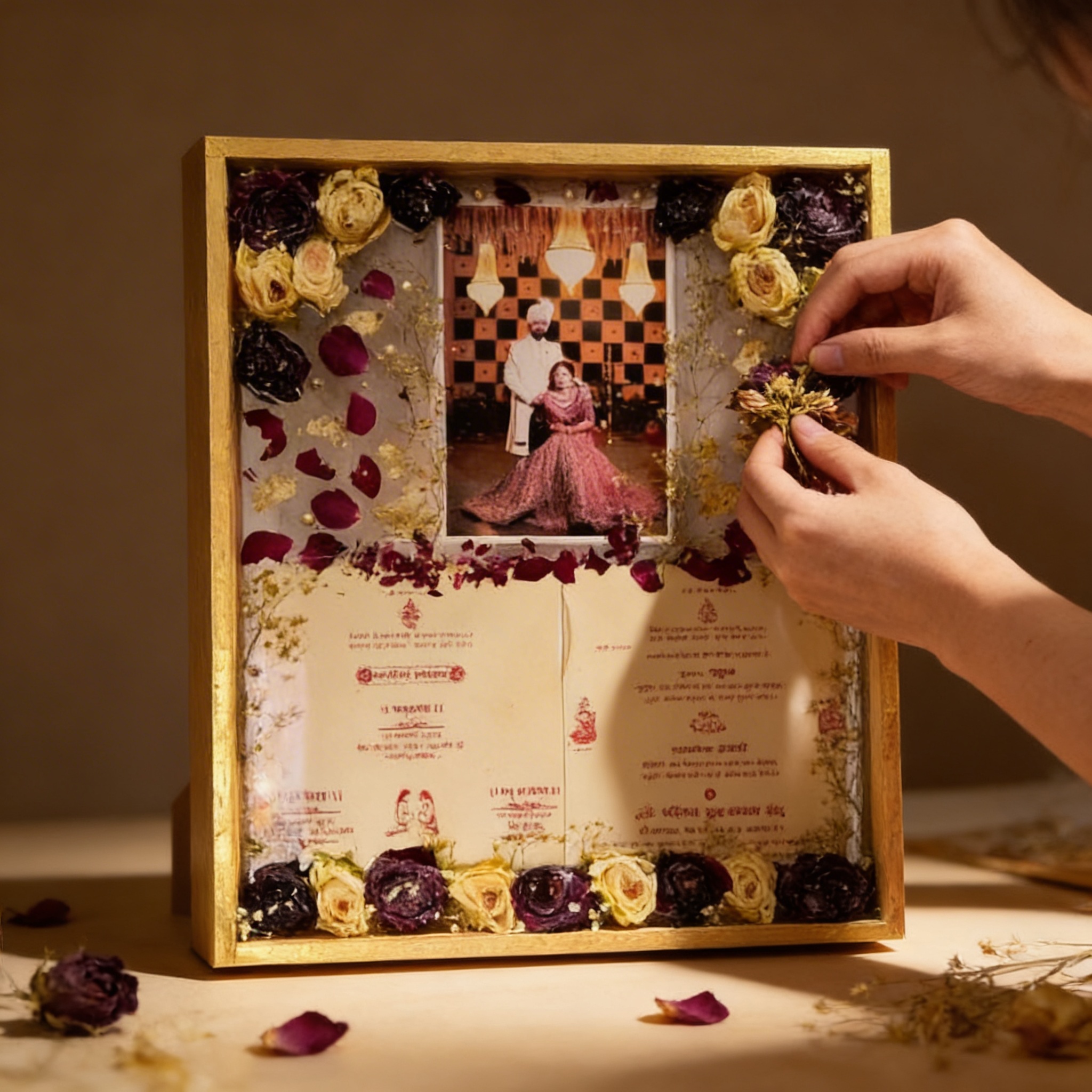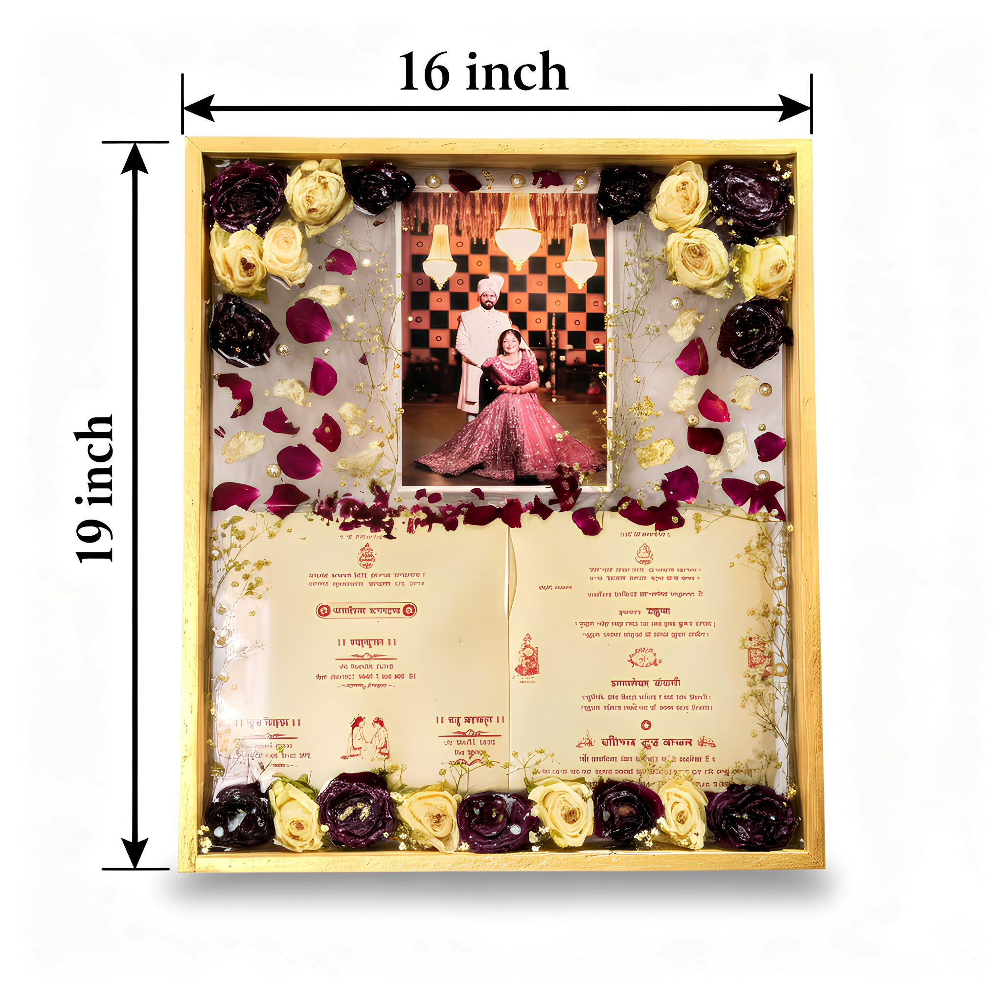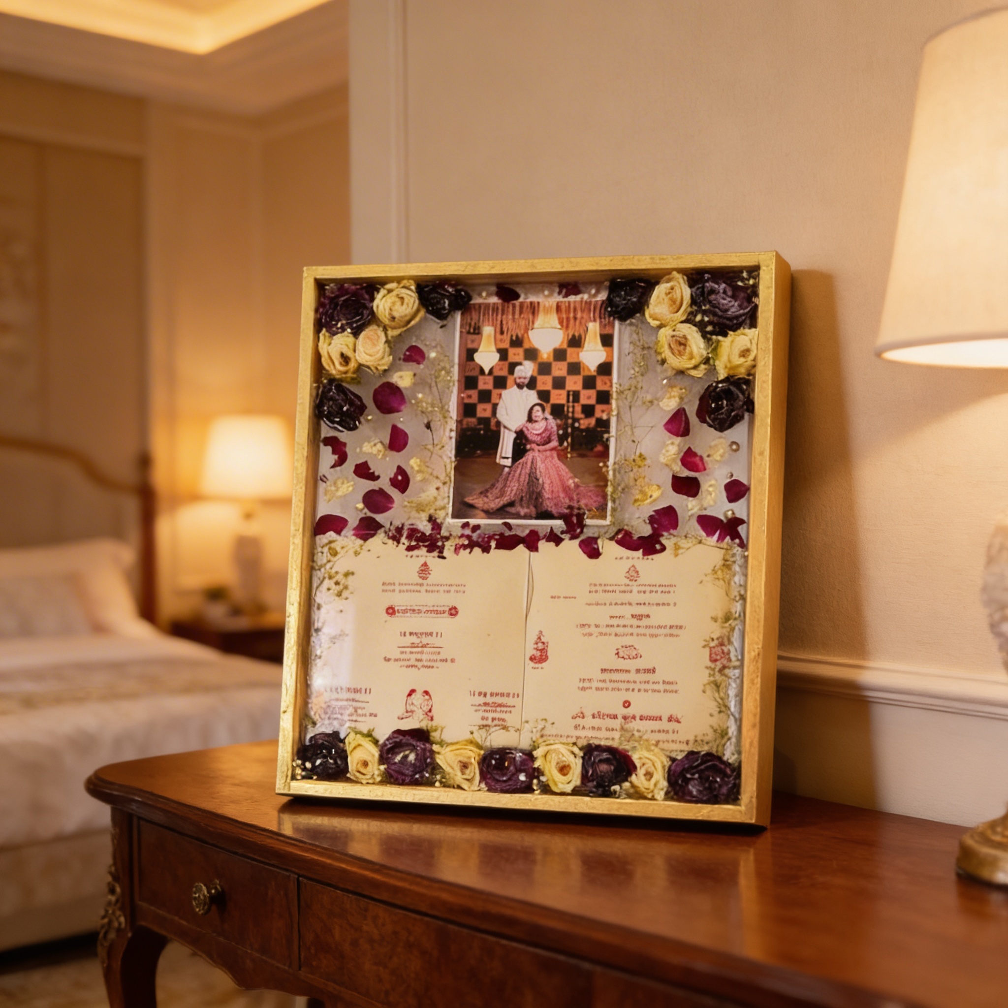 - Customize this Frame with your Roses, Photo, Date and Couple Names, Wedding card and belonging you want to preserve.