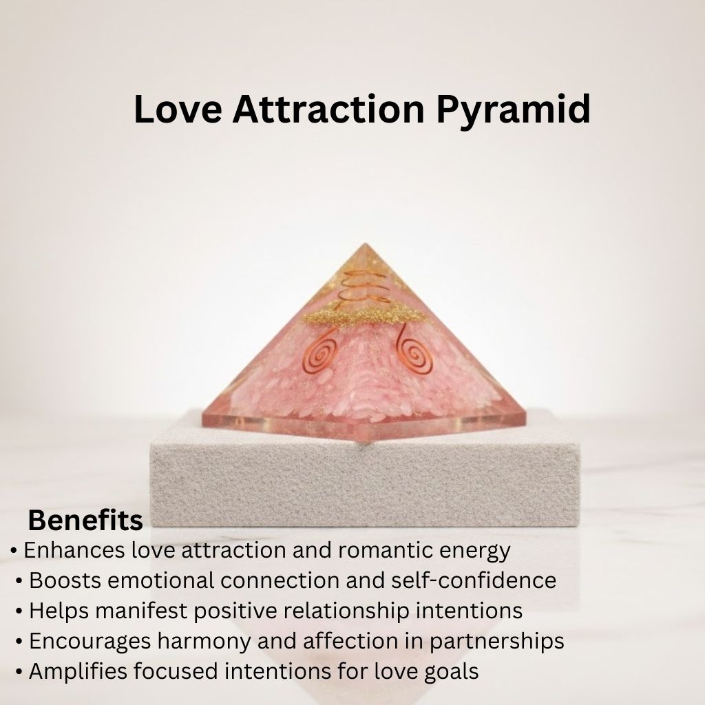 Invite love, warmth, and peace into your home with our Love Attraction Pyramid. This beautiful energy tool is crafted to help you manifest romantic connections, heal past heartbreaks, and strengthen the bonds you already have.