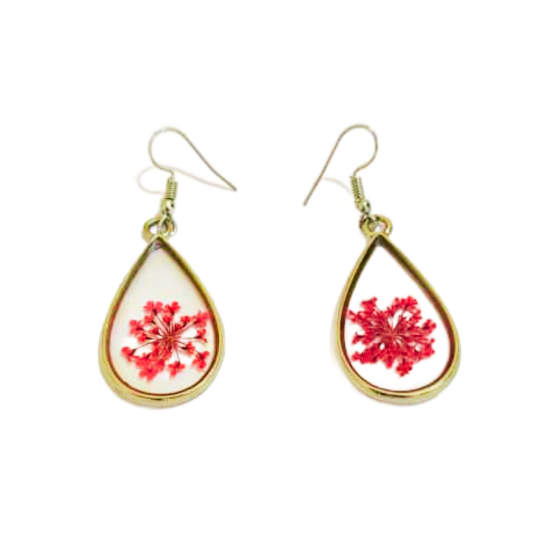 Fashionable Design: Crafted using a unique drip glue process, these oval and round earrings with a real flower boast a modern and avant-garde design, showcasing the expertise of our skilled artisans.